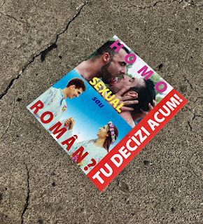 | Vedere din București. Flyer neasumat de nimeni, care le cere românilor să aleagă între a fi români sau homosexuali. Foto: Călin Hera |